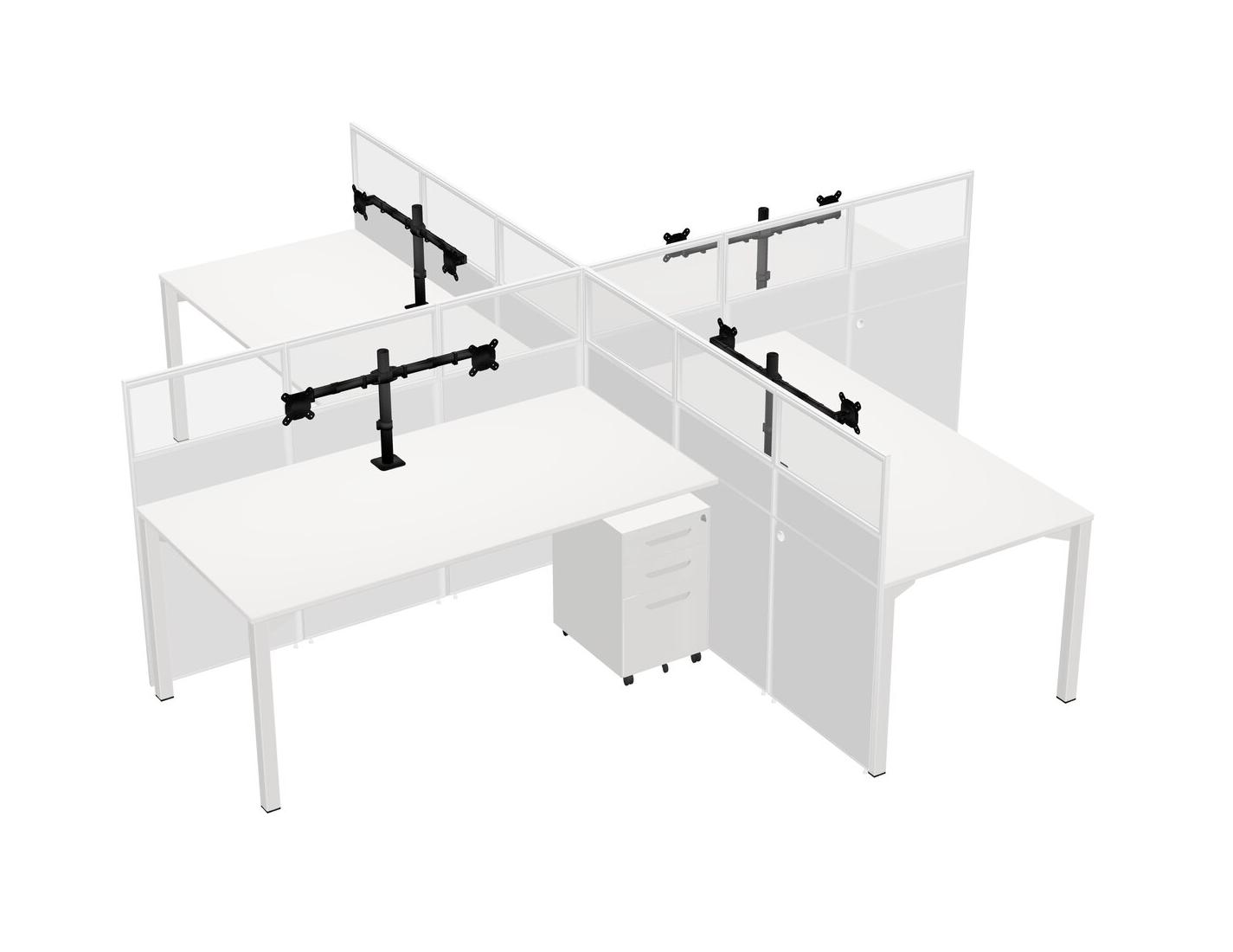 Postes De Travail Quadruples Blancs Pour 4 Personnes + Tiroirs Mobiles En Métal Blanc + Bras Pour écran (bras Doubles)