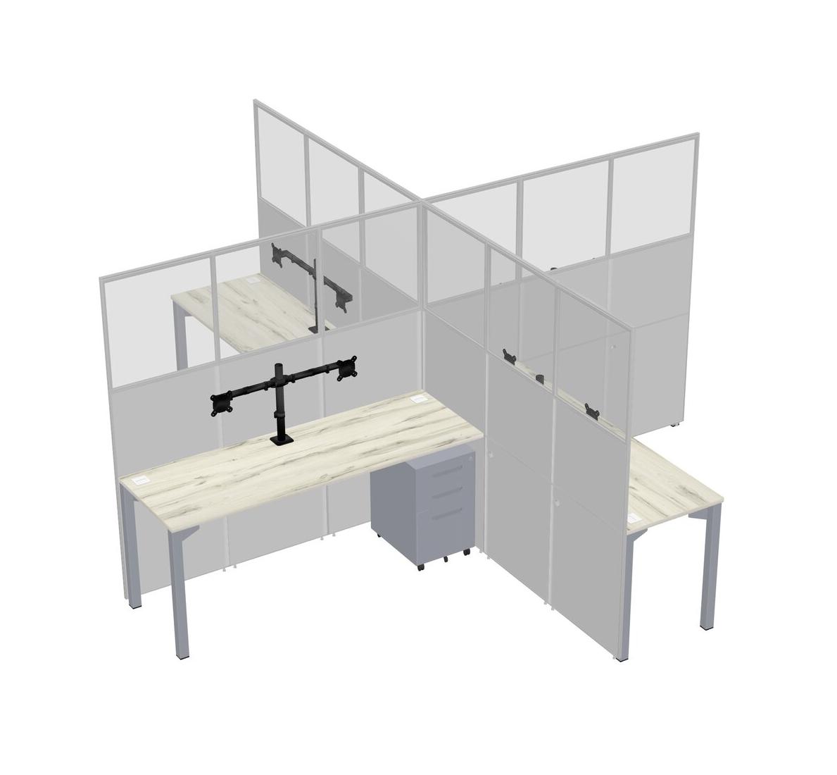 Postes De Travail Heinne Holz Quad Pour 4 Personnes + Tiroirs Mobiles En Métal Gris + Bras Pour écran (bras Doubles)