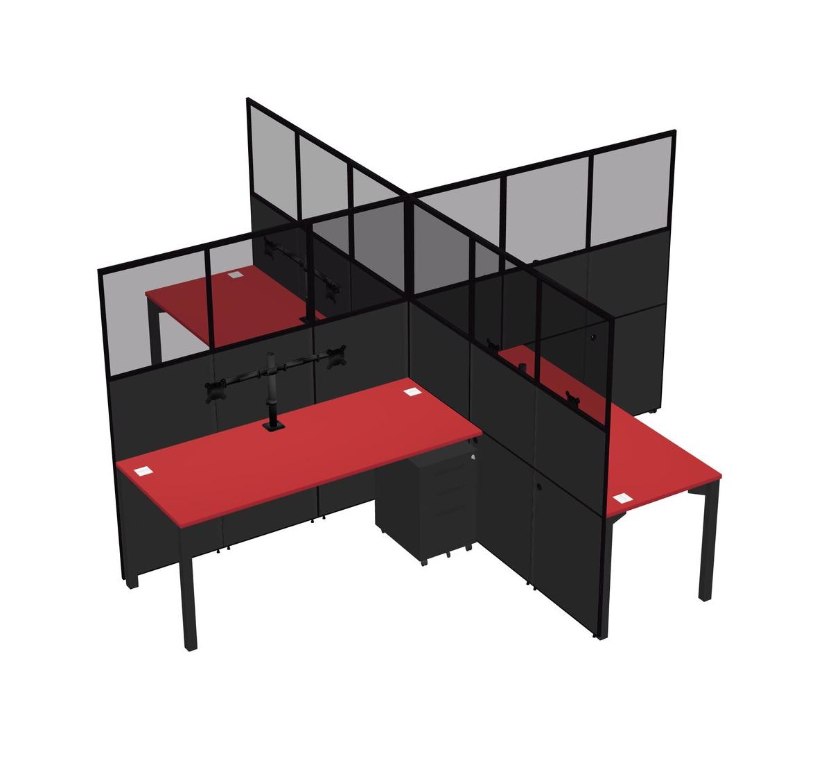 Postes De Travail Quadruples Prism Red Pour 4 Personnes + Tiroirs Mobiles En Métal Noir + Bras Pour écran (bras Doubles)