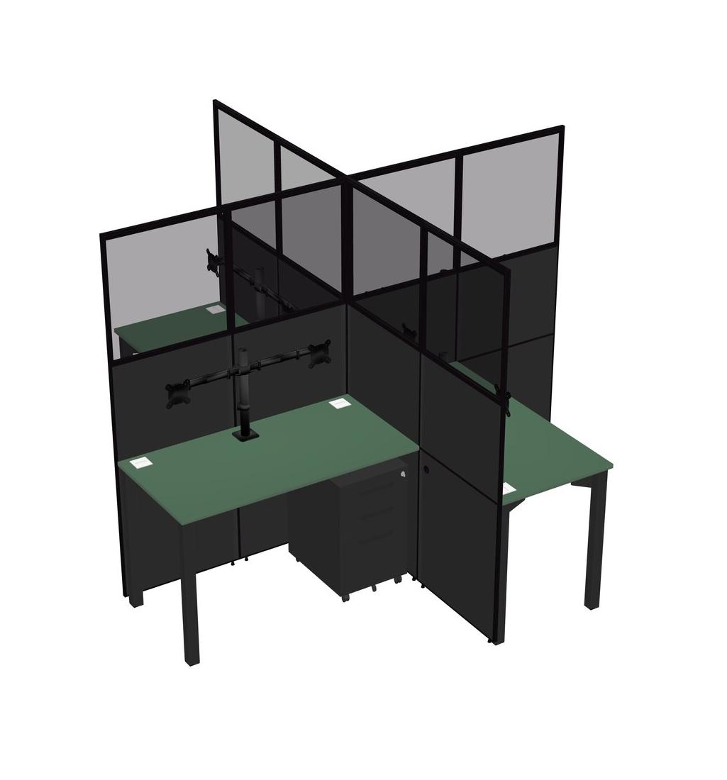 Postes De Travail Quadruples Verts Pour 4 Personnes + Tiroirs Mobiles En Métal Noir + Bras Pour écran (bras Doubles)