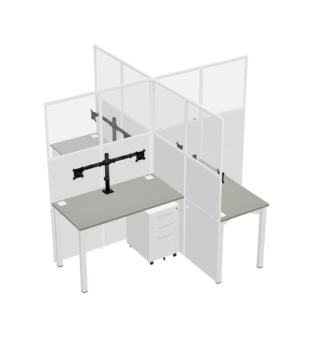 Postes De Travail Quadruples Grey Shadows Pour 4 Personnes + Tiroirs Mobiles En Métal Blanc + Bras Pour écran (bras Doubles)