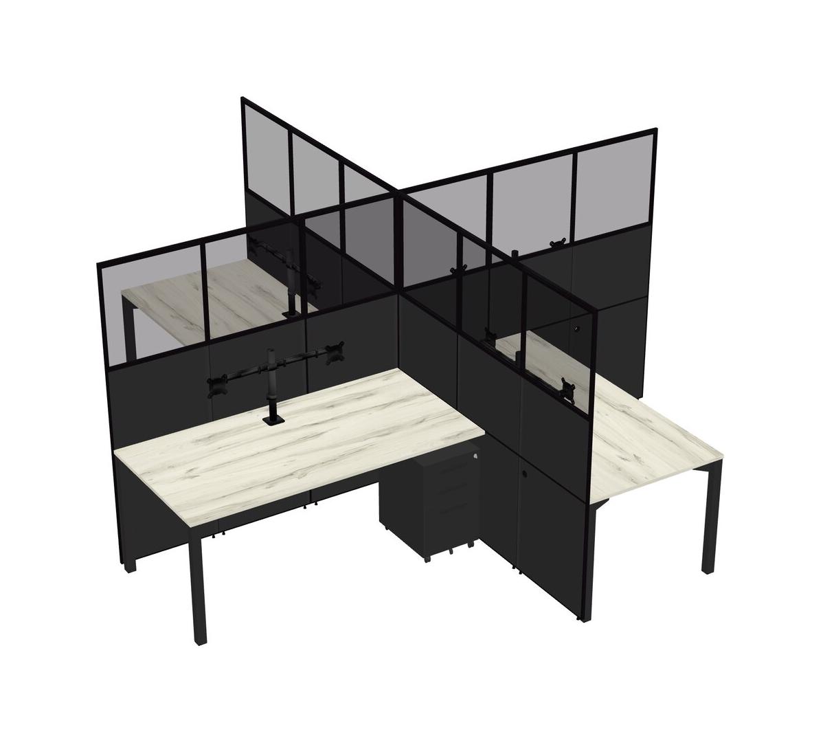 Postes De Travail Heinne Holz Quad Pour 4 Personnes + Tiroirs Mobiles En Métal Noir + Bras Pour écran (bras Doubles)
