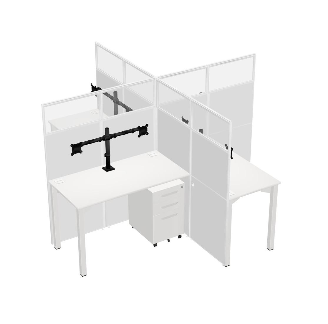 Postes De Travail Quadruples Blancs Pour 4 Personnes + Tiroirs Mobiles En Métal Blanc + Bras Pour écran (bras Doubles)