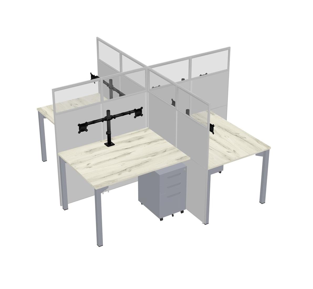 Postes De Travail Heinne Holz Quad Pour 4 Personnes + Tiroirs Mobiles En Métal Gris + Bras Pour écran (bras Doubles)