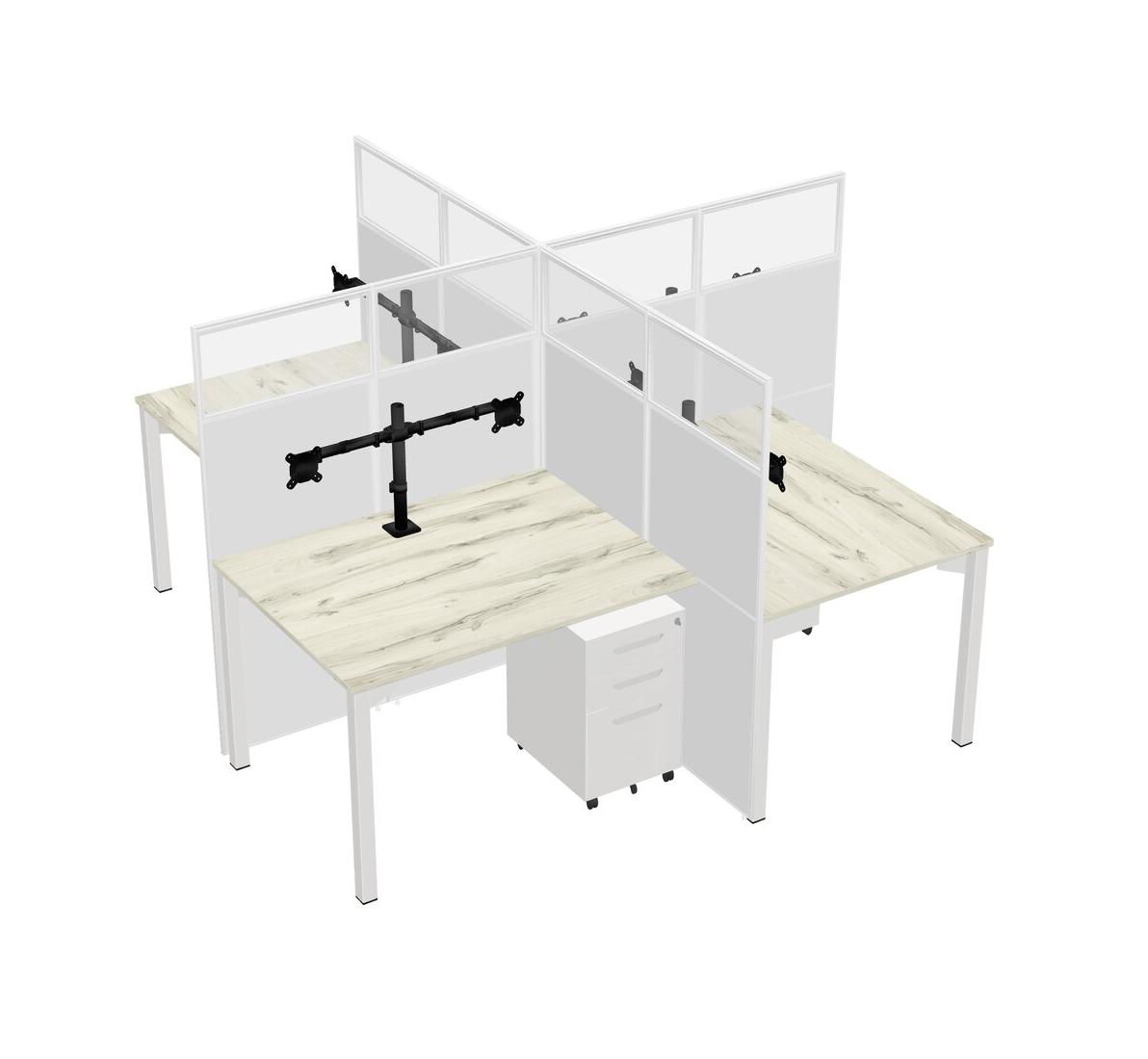 Postes De Travail Heinne Holz Quad Pour 4 Personnes + Tiroirs Mobiles En Métal Blanc + Bras Pour écran (bras Doubles)