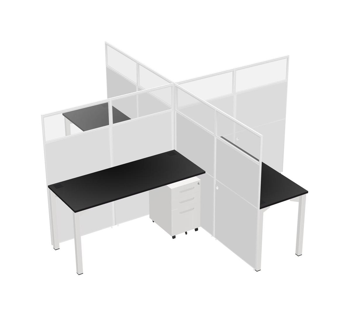 Postes De Travail Quadruples Noirs Pour 4 Personnes + Tiroirs Mobiles En Métal Blanc