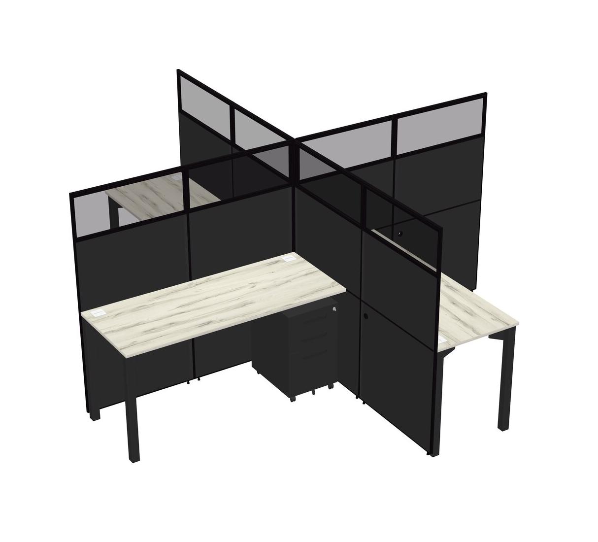 Postes De Travail Quadruples Heinne Holz Pour 4 Personnes + Tiroirs Mobiles En Métal Noir