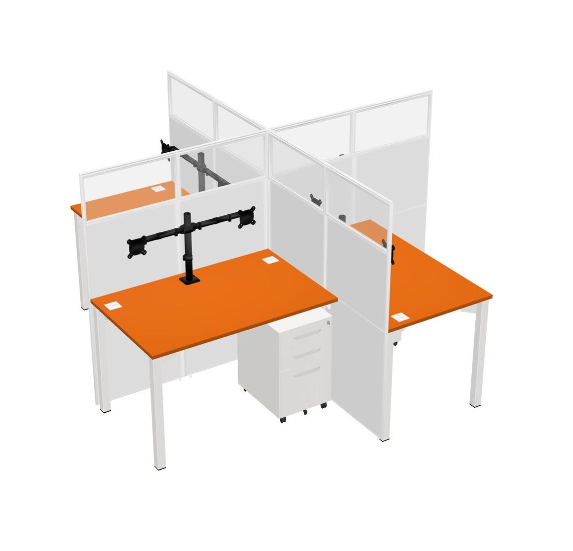 Postes De Travail Quadruples Orange Pour 4 Personnes + Tiroirs Mobiles En Métal Blanc + Bras Pour écran (bras Doubles)
