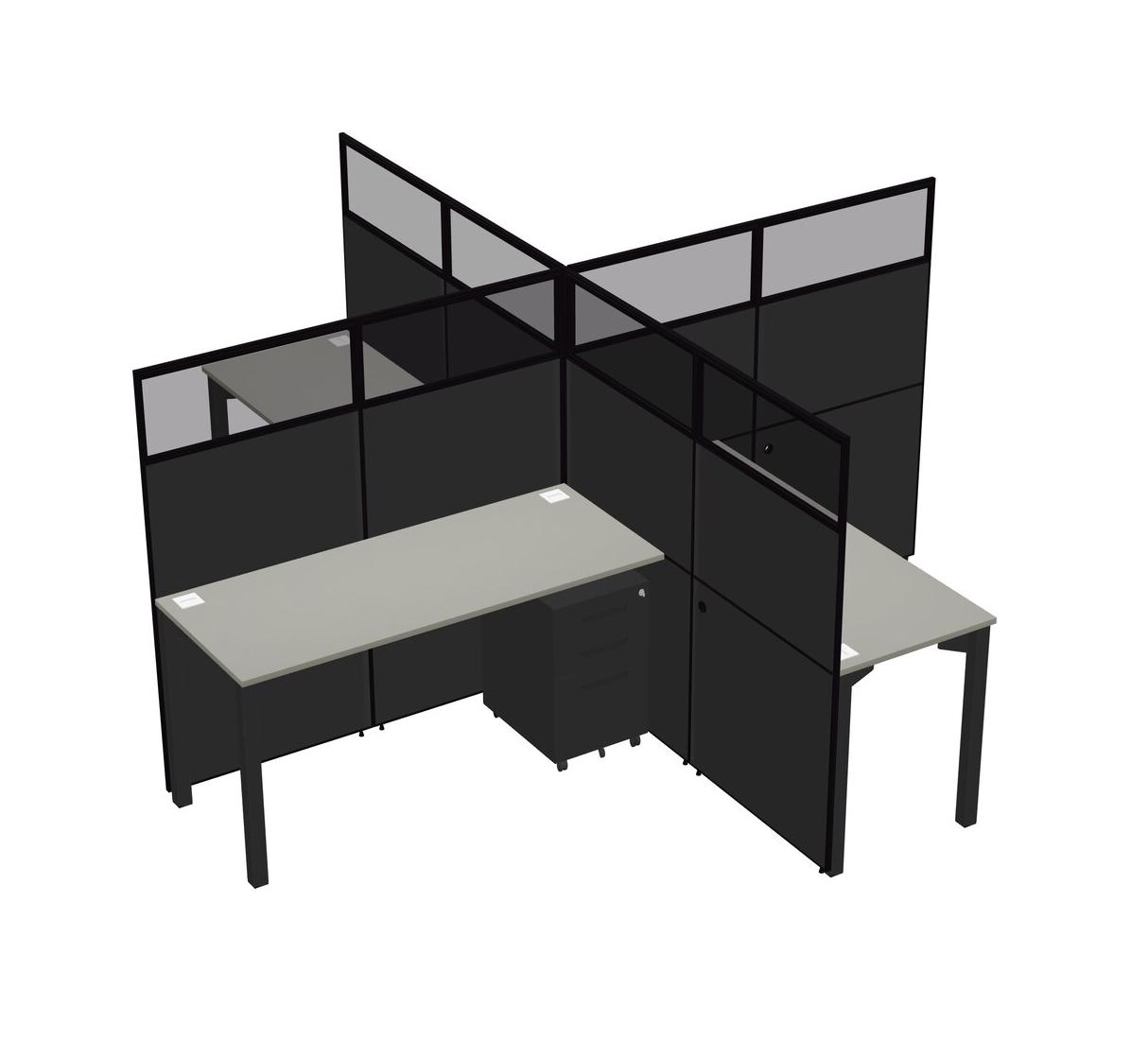 Postes De Travail Quadruples Grey Shadows Pour 4 Personnes + Tiroirs Mobiles En Métal Noir