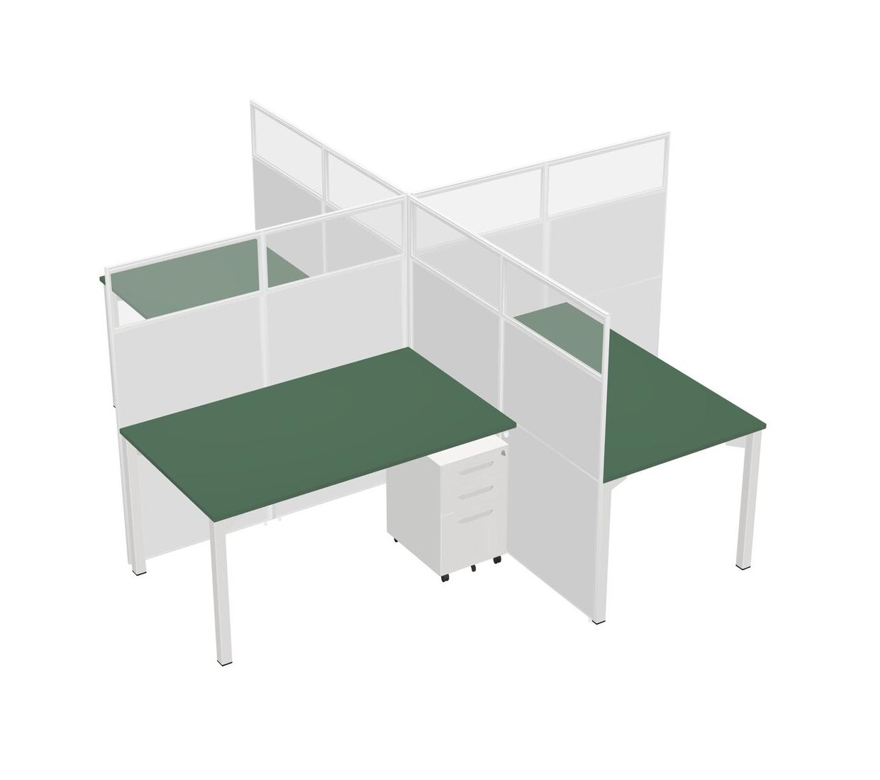 Postes De Travail Quadruples Verts Pour 4 Personnes + Tiroirs Mobiles En Métal Blanc