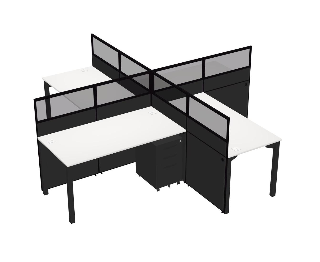 Postes De Travail Quadruples Blancs Pour 4 Personnes + Tiroirs Mobiles En Métal Noir