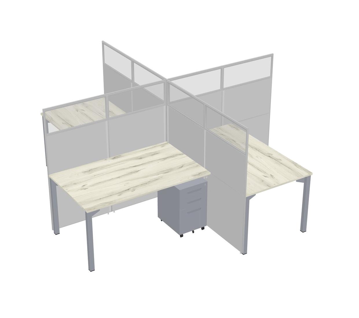 Postes De Travail Quadruples Heinne Holz Pour 4 Personnes + Tiroirs Mobiles En Métal Gris