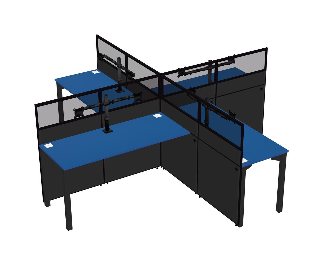 Postes De Travail Quadruples Prism Blue Pour 4 Personnes + Bras Pour écran (bras Doubles)