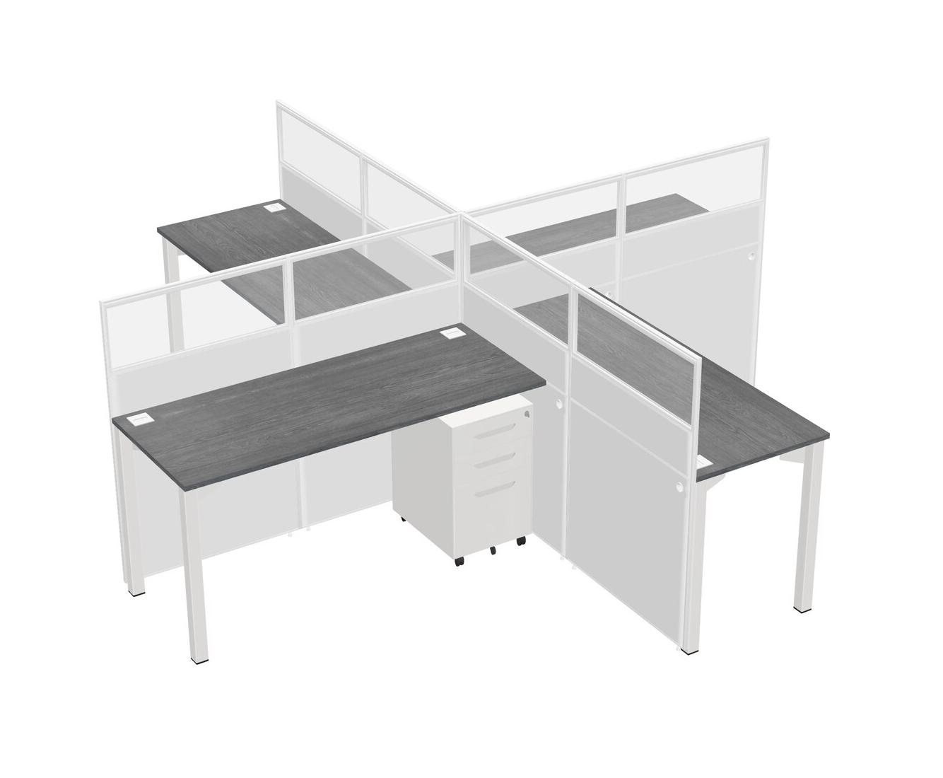 Postes De Travail Quadruples Gris Pour 4 Personnes + Tiroirs Mobiles En Métal Blanc
