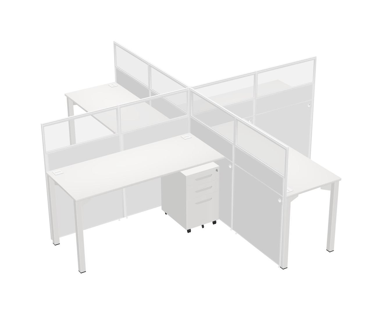 Postes De Travail Quadruples Blancs Pour 4 Personnes + Tiroirs Mobiles En Métal Blanc