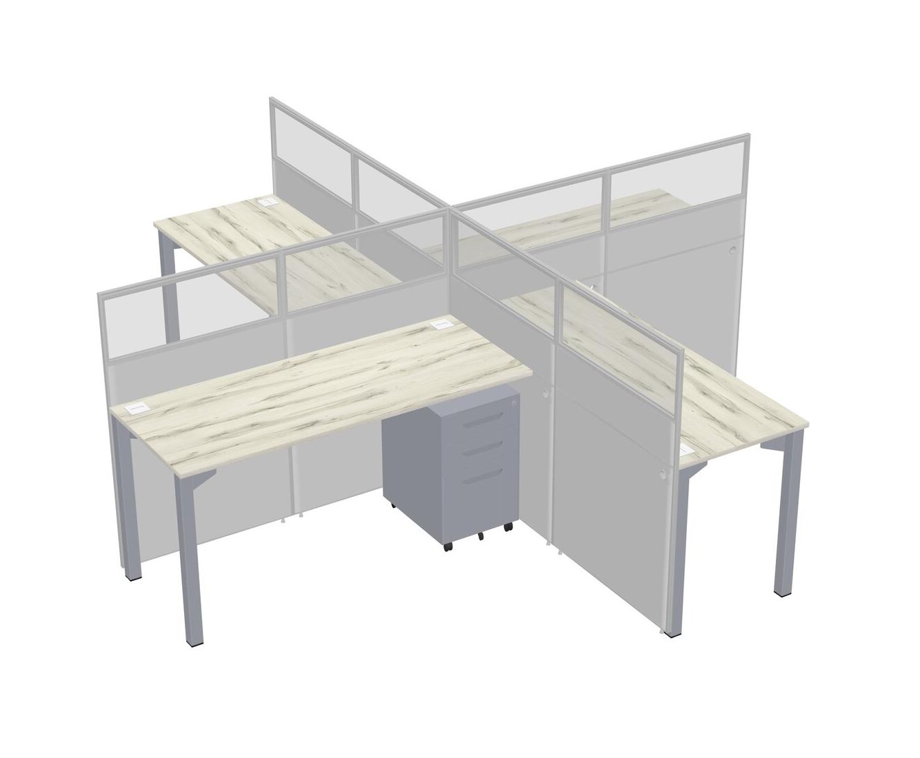 Postes De Travail Quadruples Heinne Holz Pour 4 Personnes + Tiroirs Mobiles En Métal Gris