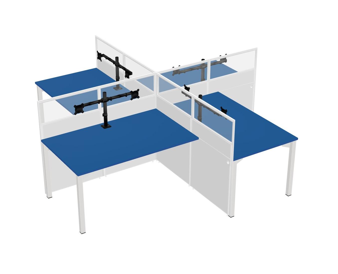 Postes De Travail Quadruples Prism Blue Pour 4 Personnes + Bras Pour écran (bras Doubles)