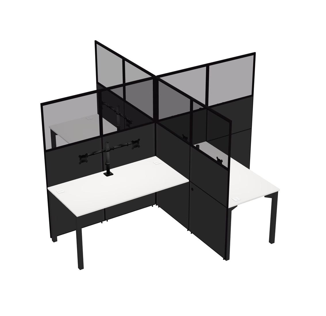 Postes De Travail Quadruples Blancs Pour 4 Personnes + Bras Pour écran (bras Doubles)