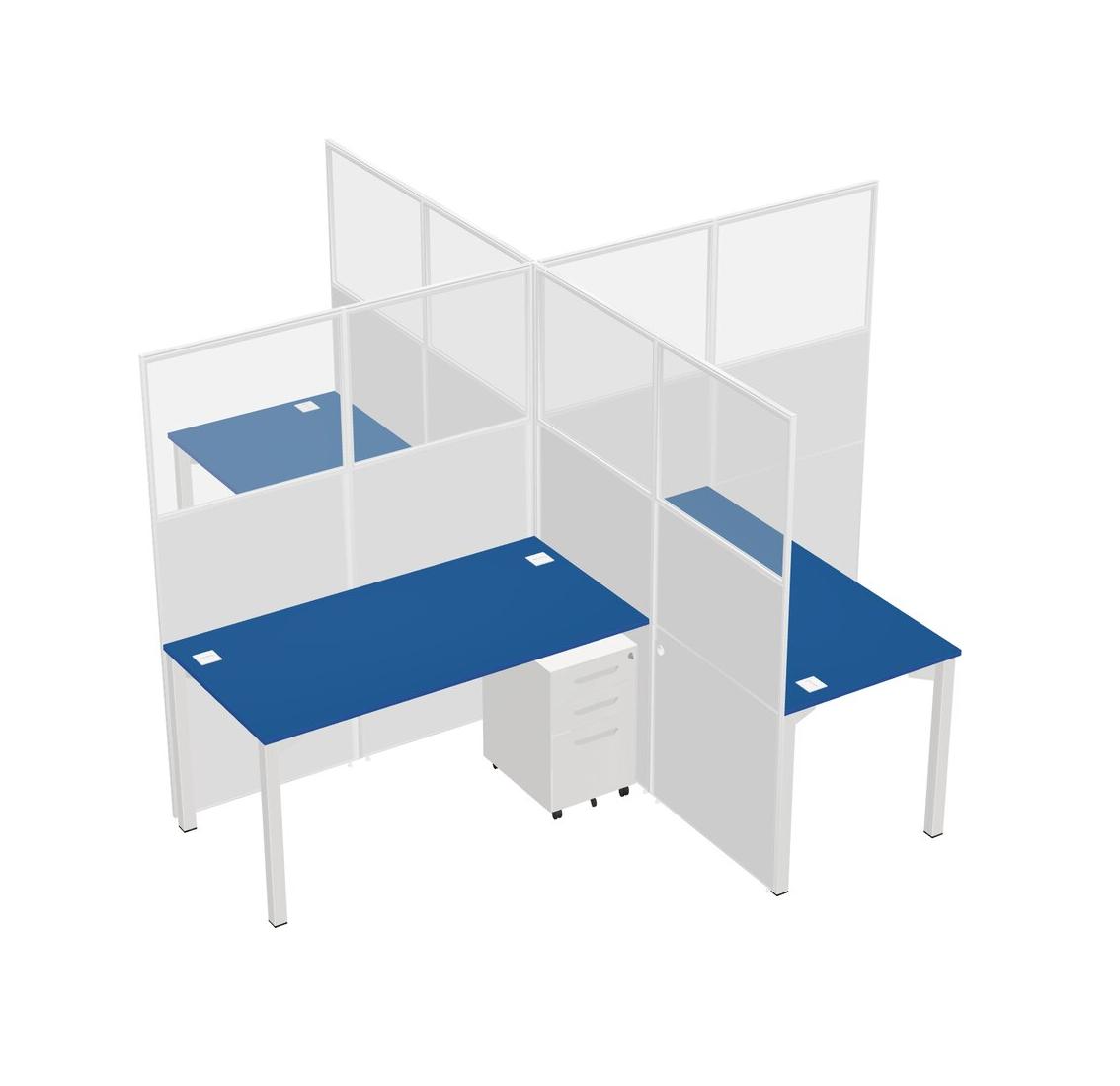 Postes De Travail Quadruples Prism Blue Pour 4 Personnes + Tiroirs Mobiles En Métal Blanc