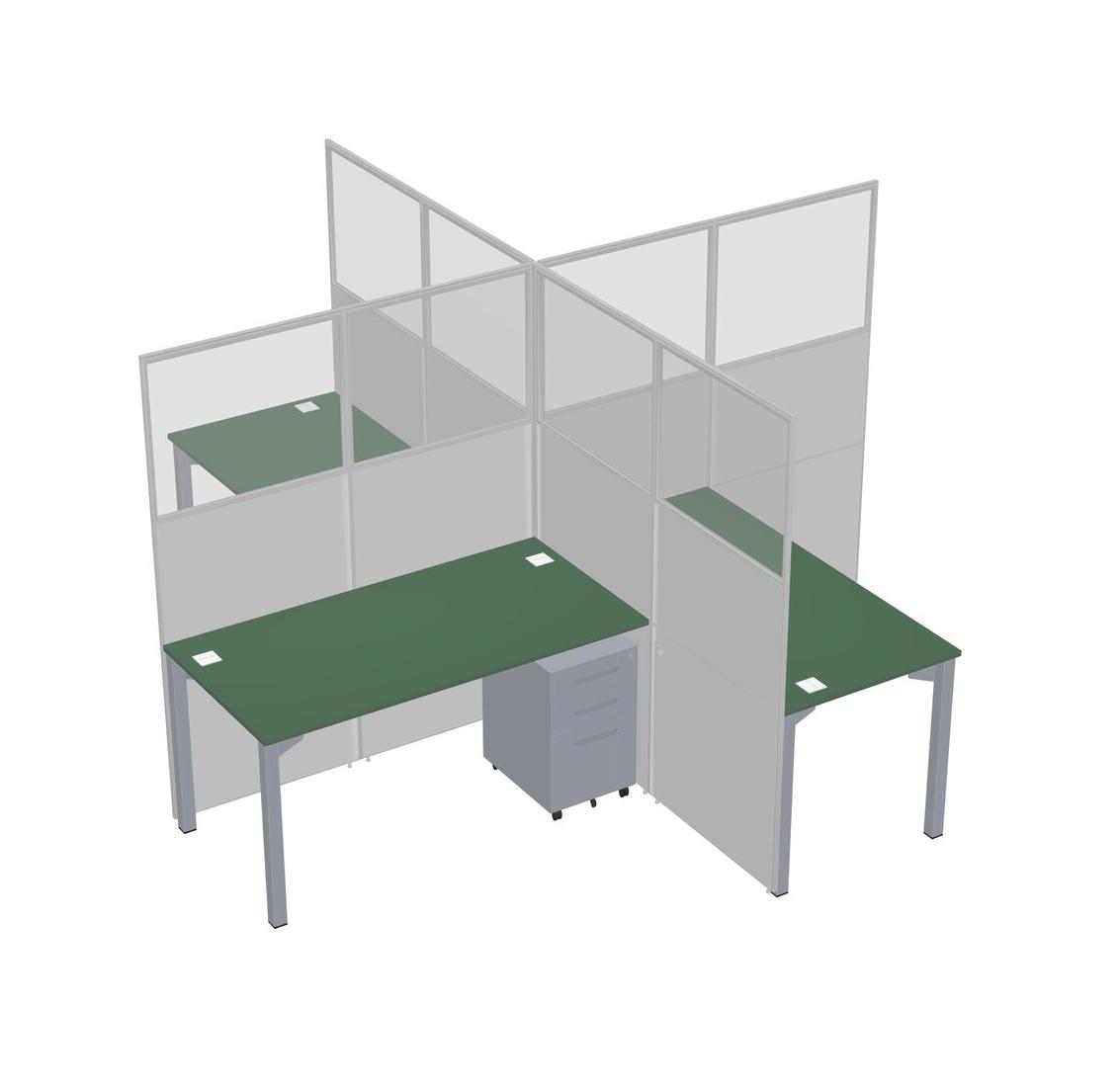 Postes De Travail Quadruples Verts Pour 4 Personnes + Tiroirs Mobiles En Métal Gris