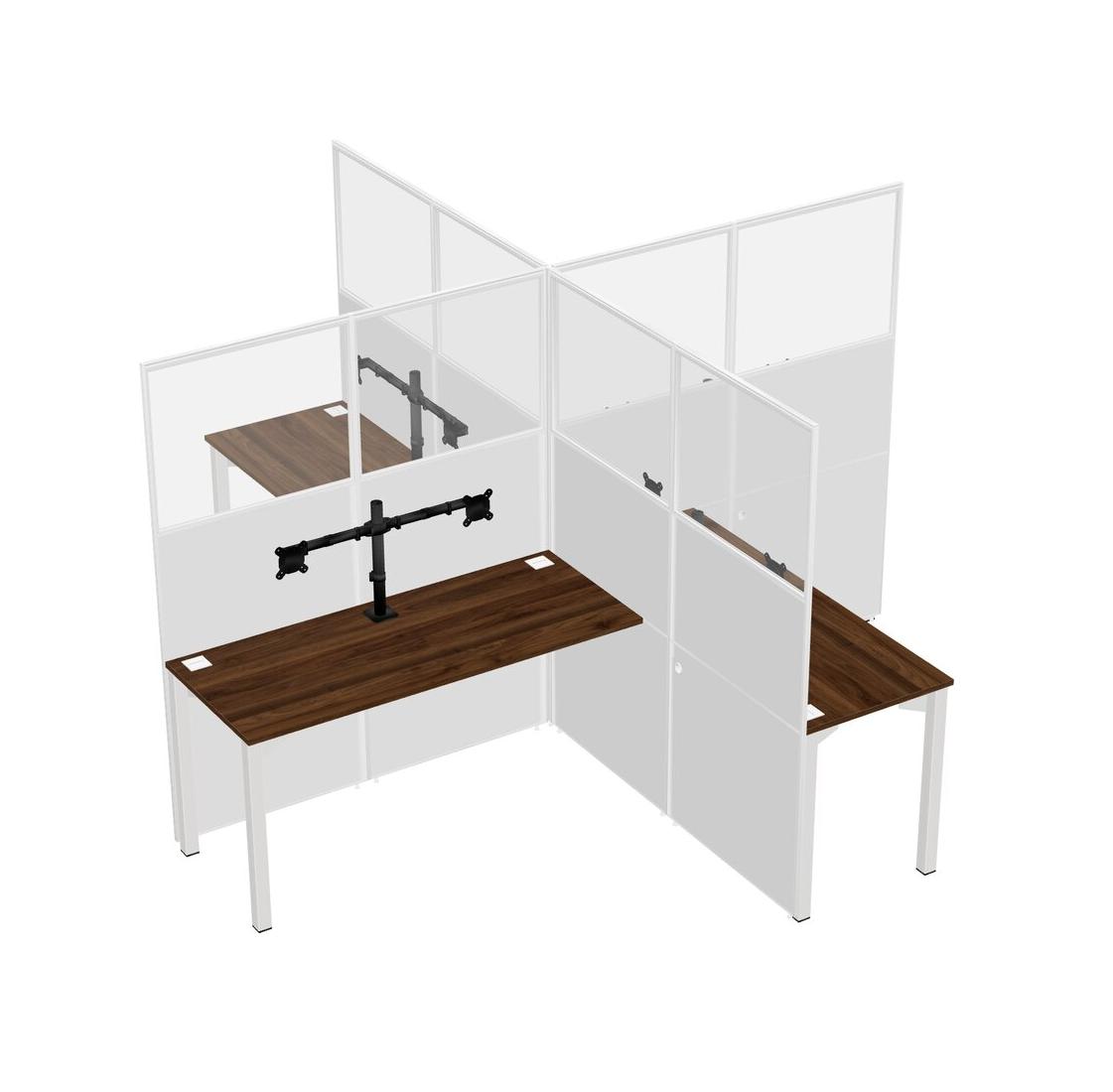 Postes De Travail à Quatre Cabines En Noyer Columbia Pour 4 Personnes + Bras Pour écran (bras Doubles)