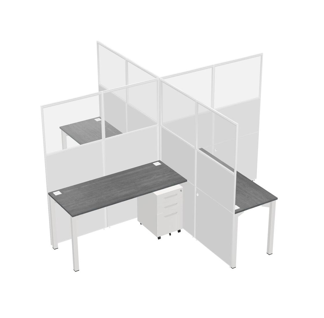 Postes De Travail Quadruples Gris Pour 4 Personnes + Tiroirs Mobiles En Métal Blanc