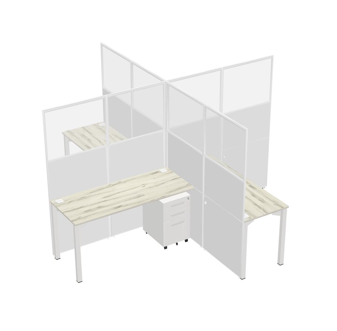 Postes De Travail Heinne Holz Quad Pour 4 Personnes + Tiroirs Mobiles En Métal Blanc