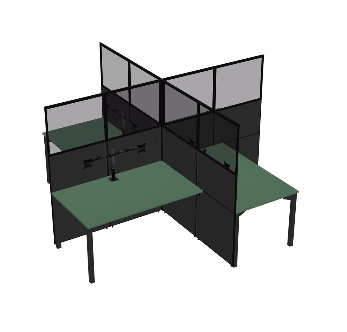 Postes De Travail Quadruples Verts Pour 4 Personnes + Bras Pour écran (bras Doubles)