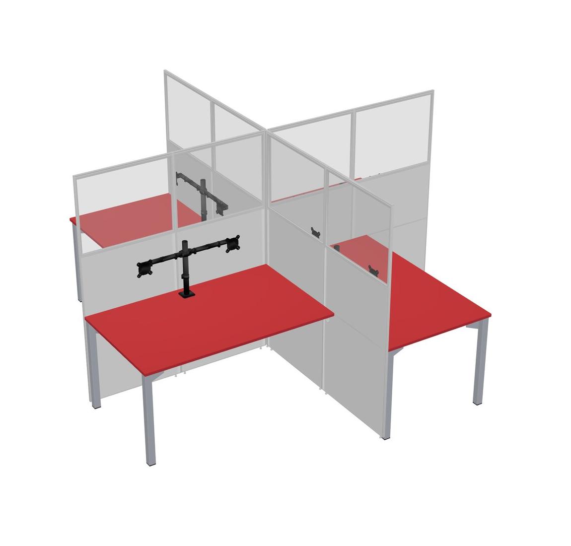 Postes De Travail Quadruples Prism Red Pour 4 Personnes + Bras Pour écran (bras Doubles)