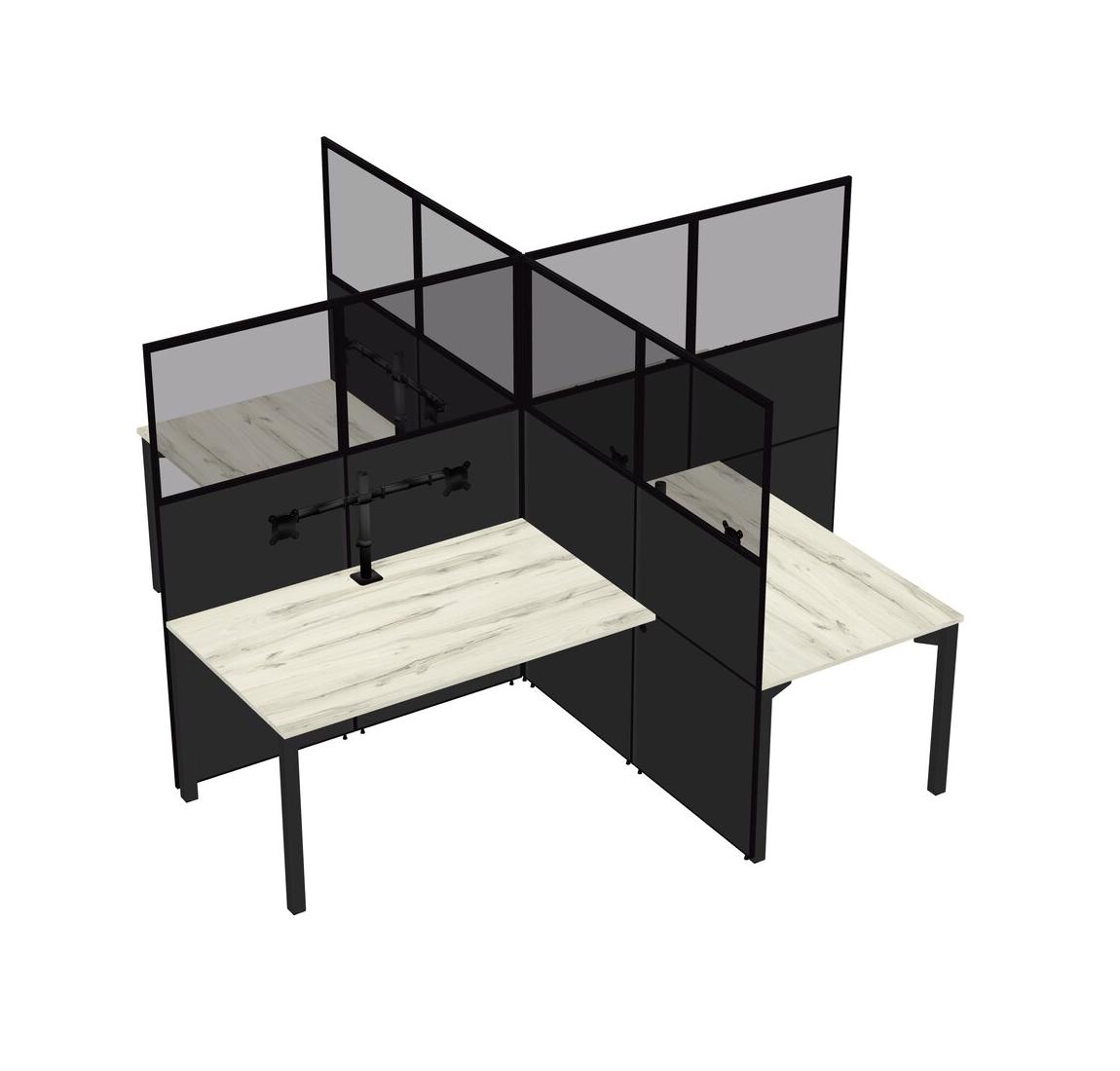 Postes De Travail Quadruples Heinne Holz Pour 4 Personnes + Bras Pour écran (bras Doubles)
