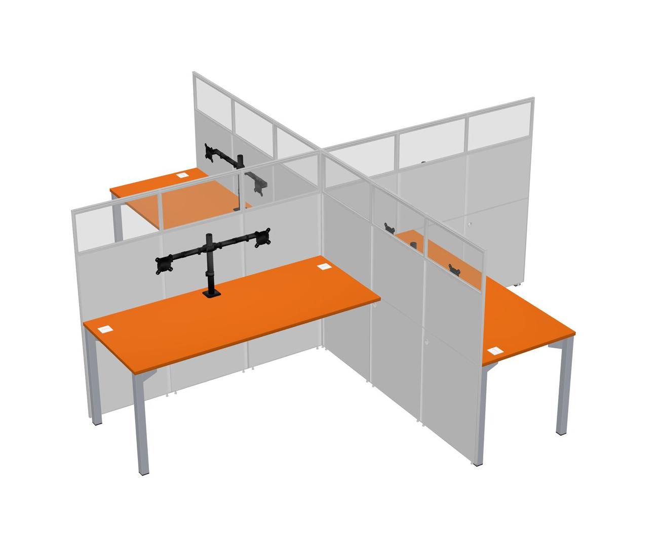 Postes De Travail Quadruples Orange Pour 4 Personnes + Bras Pour écran (bras Doubles)