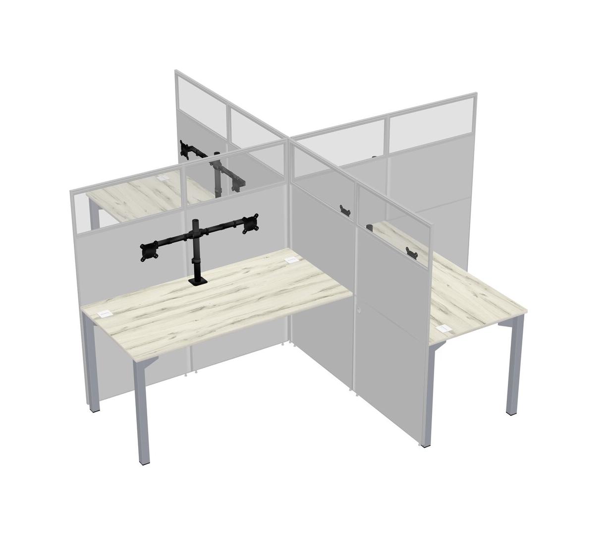 Postes De Travail Quadruples Heinne Holz Pour 4 Personnes + Bras Pour écran (bras Doubles)