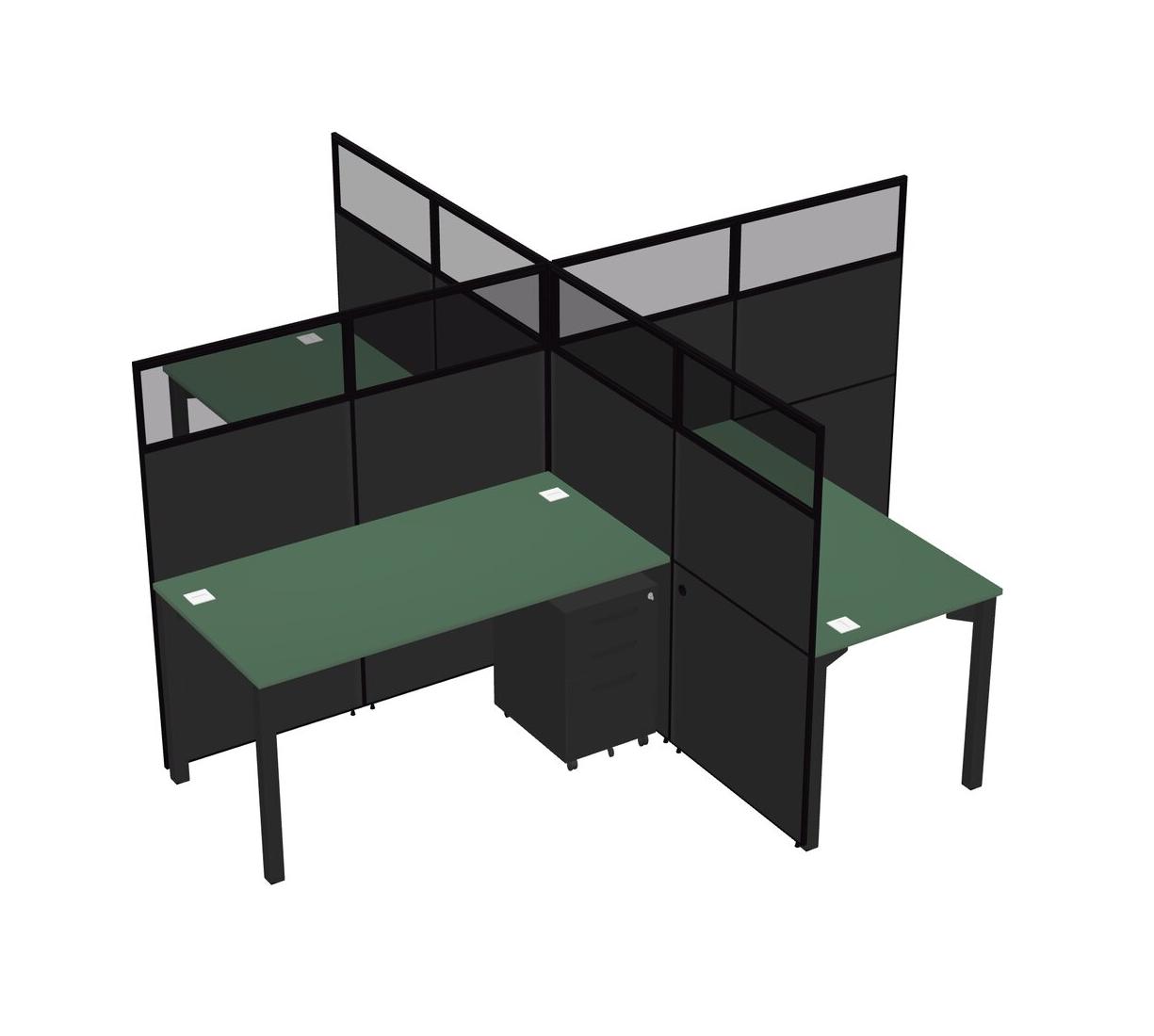 Postes De Travail Quadruples Verts Pour 4 Personnes + Tiroirs Mobiles En Métal Noir