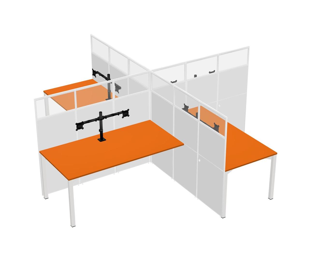 Postes De Travail Quadruples Orange Pour 4 Personnes + Bras Pour écran (bras Doubles)