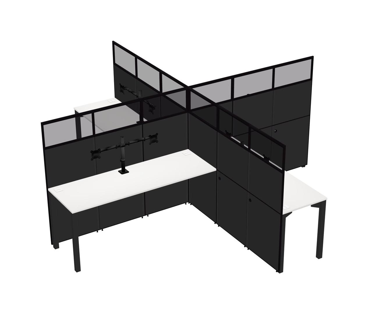 Postes De Travail Quadruples Blancs Pour 4 Personnes + Bras Pour écran (bras Doubles)