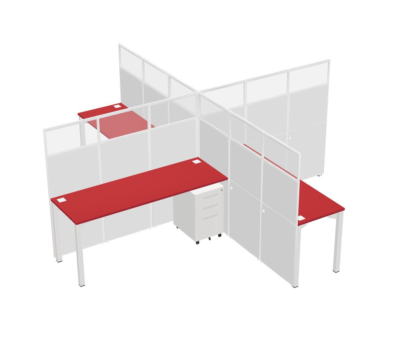 Postes De Travail Quadruples Prism Red Pour 4 Personnes + Tiroirs Mobiles En Métal Blanc