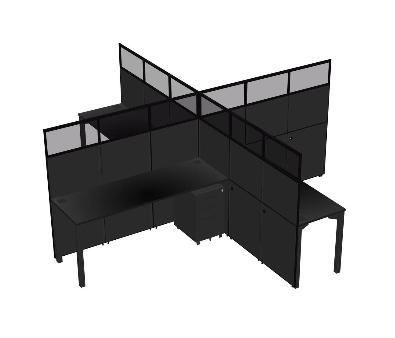 Postes De Travail Quadruples Noirs Pour 4 Personnes + Tiroirs Mobiles En Métal Noir