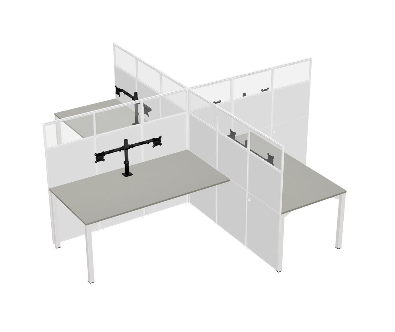 Postes De Travail Quadruples Grey Shadows Pour 4 Personnes + Bras Pour écran (bras Doubles)