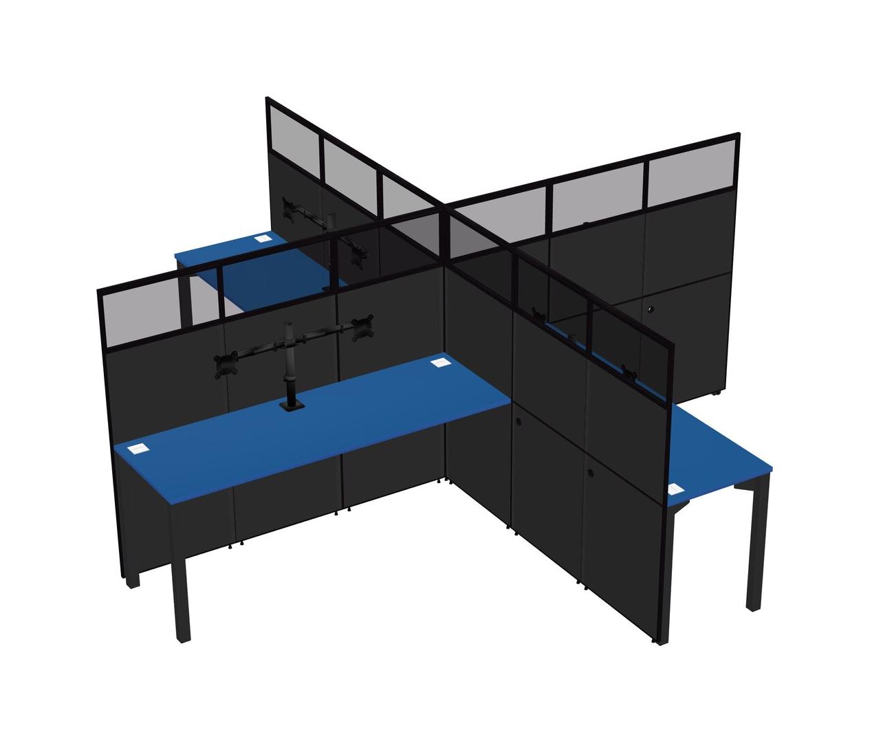 Postes De Travail Quadruples Prism Blue Pour 4 Personnes + Bras Pour écran (bras Doubles)