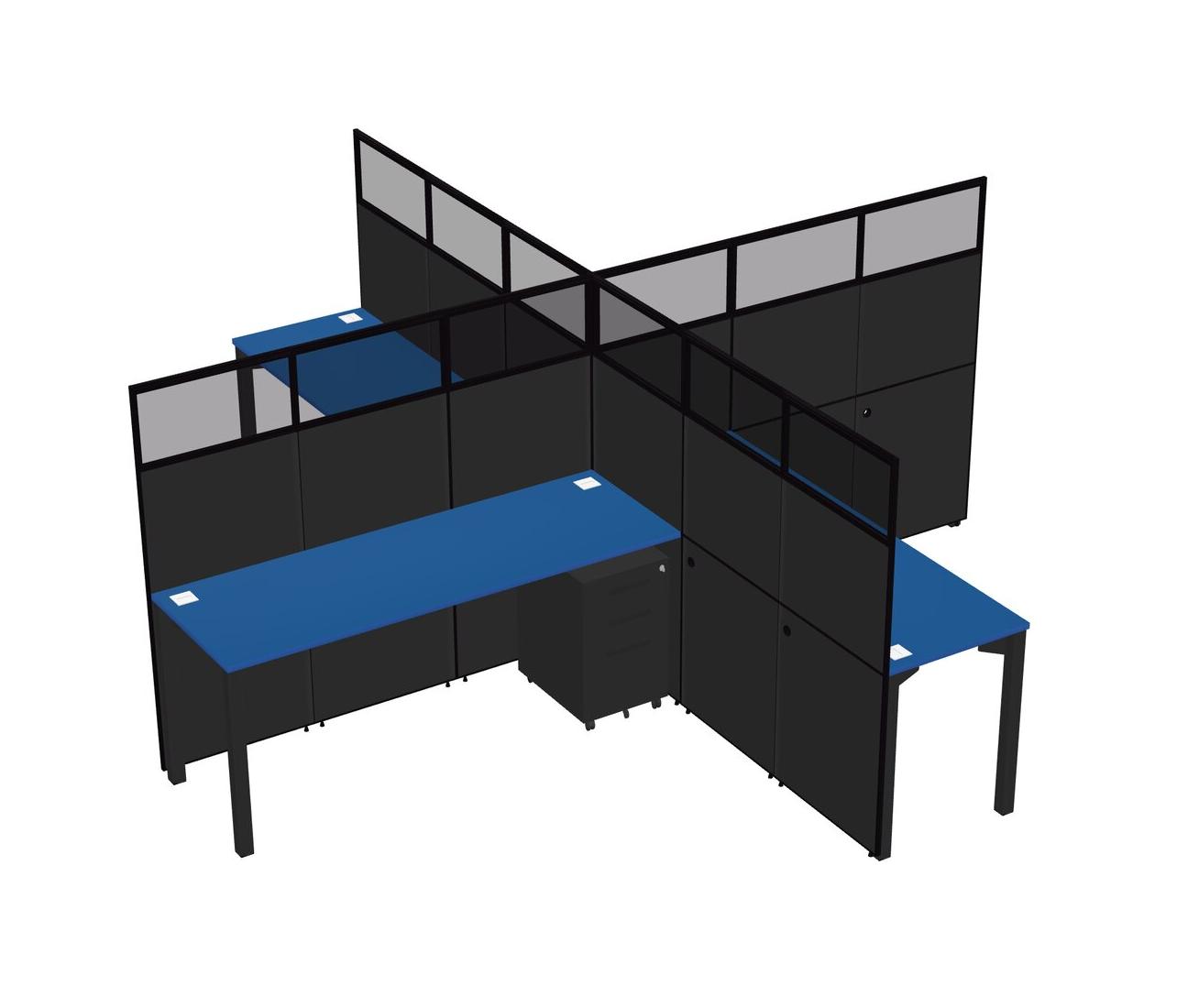 Postes De Travail Quadruples Prism Blue Pour 4 Personnes + Tiroirs Mobiles En Métal Noir
