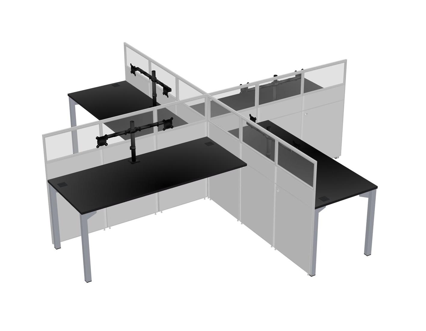 Postes De Travail Quadruples Noirs Pour 4 Personnes + Bras Pour écran (bras Doubles)