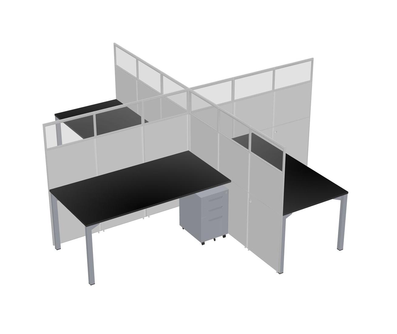 Postes De Travail Quadruples Noirs Pour 4 Personnes + Tiroirs Mobiles En Métal Gris