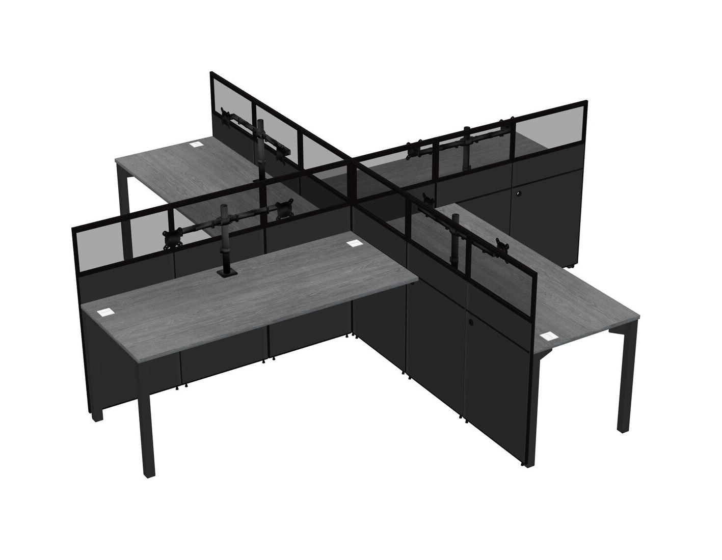 Postes De Travail Quadruples Gris Pour 4 Personnes + Bras Pour écran (bras Doubles)