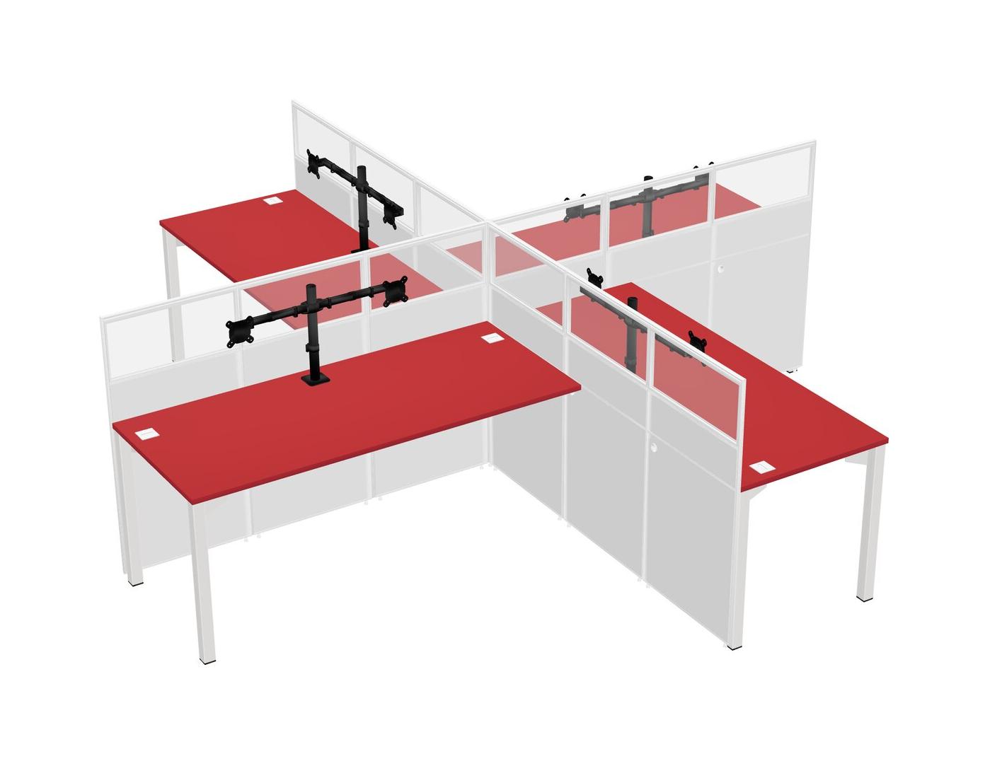 Postes De Travail Quadruples Prism Red Pour 4 Personnes + Bras Pour écran (bras Doubles)