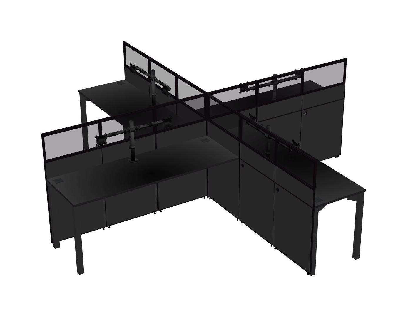 Postes De Travail Quadruples Noirs Pour 4 Personnes + Bras Pour écran (bras Doubles)