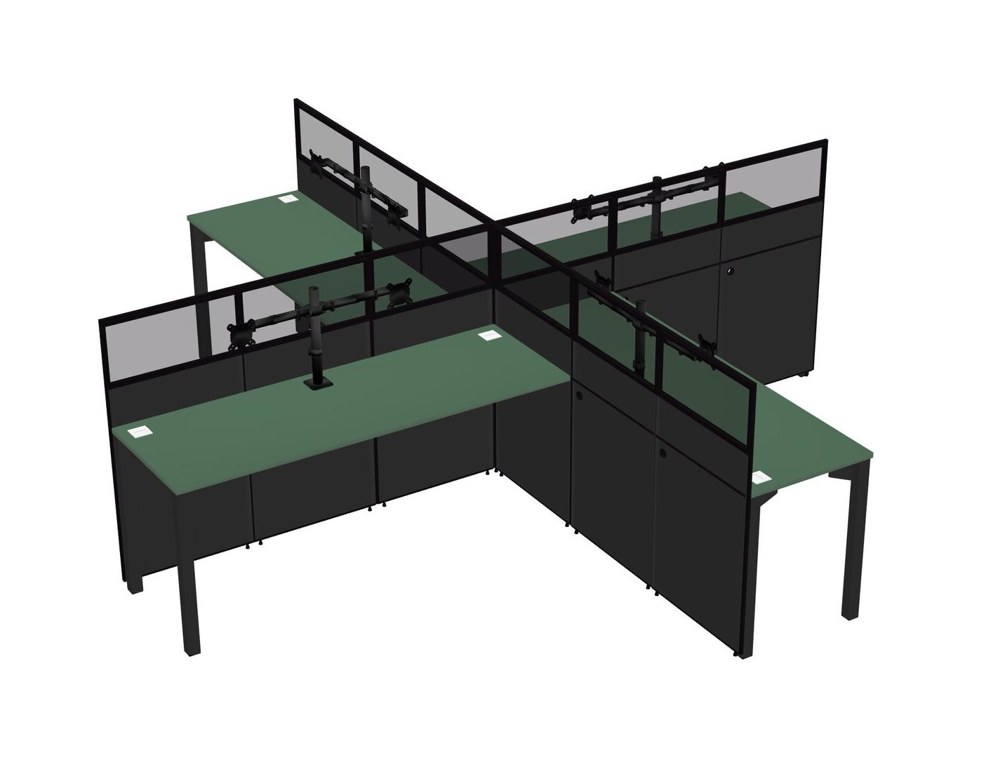 Postes De Travail Quadruples Verts Pour 4 Personnes + Bras Pour écran (bras Doubles)