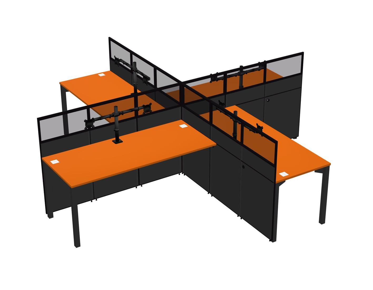 Postes De Travail Quadruples Orange Pour 4 Personnes + Bras Pour écran (bras Doubles)