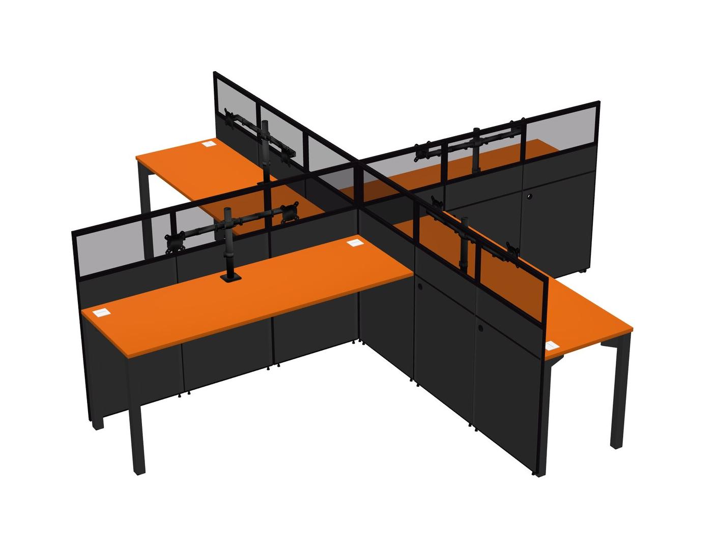 Postes De Travail Quadruples Orange Pour 4 Personnes + Bras Pour écran (bras Doubles)