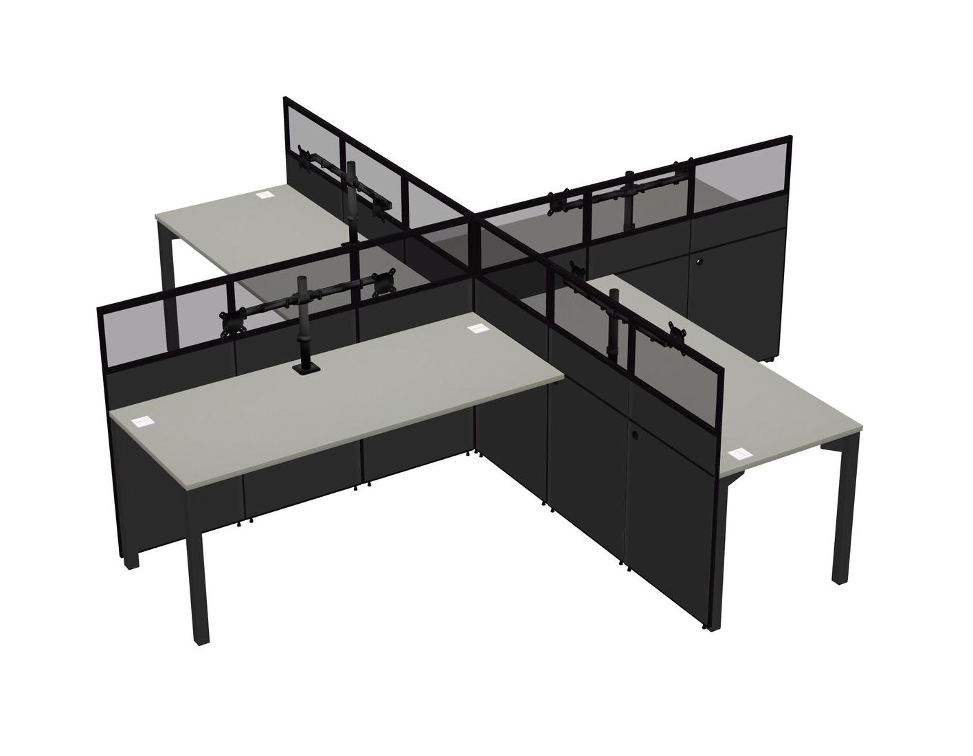 Postes De Travail Quadruples Grey Shadows Pour 4 Personnes + Bras Pour écran (bras Doubles)