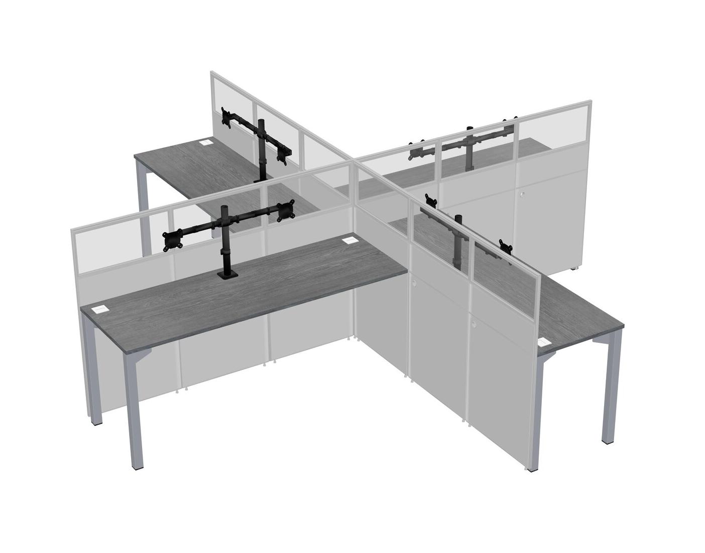 Postes De Travail Quadruples Gris Pour 4 Personnes + Bras Pour écran (bras Doubles)
